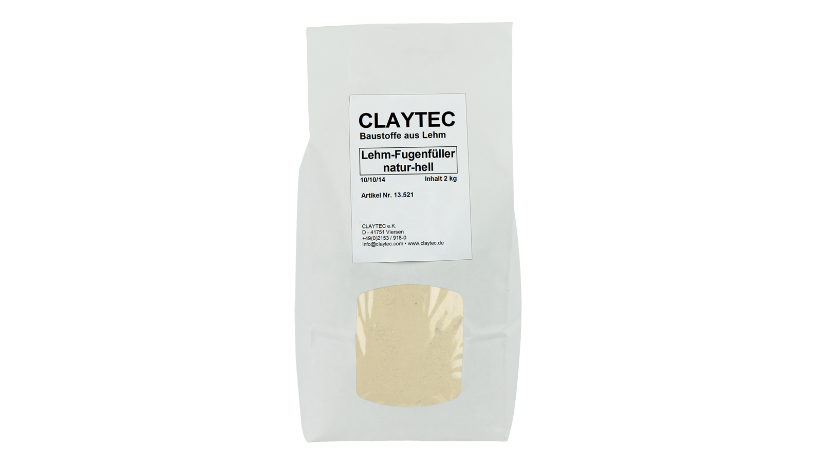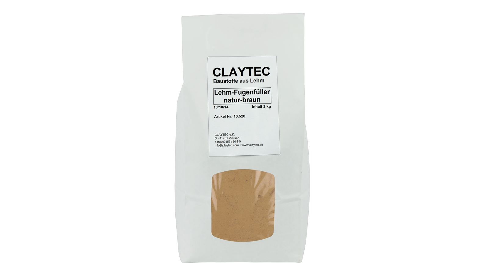 Töltőanyag az agyag és fa építőelemek közötti fúgákhoz, mint az ajtók lefedései, vagy a lábazati csíkok, illetve a dübelek lyukai. Szintén alkalmas történelmi fachwerk-gerendázatok melletti repedéseik és hiányzó részek kitöltésére. Az agyag fúgatöltő a műanyag töltőpaszták ökológiai alternatívája. A száraz anyagot vízzel felkeverve, a Claytec cserélhető kartusba betöltve használható. A maradék mennyiségeket korlátlan ideig lehet tárolni. A természetes barna színtónus a természetes belső agyagvakolatokkal fedett felületekhez illeszkedik.