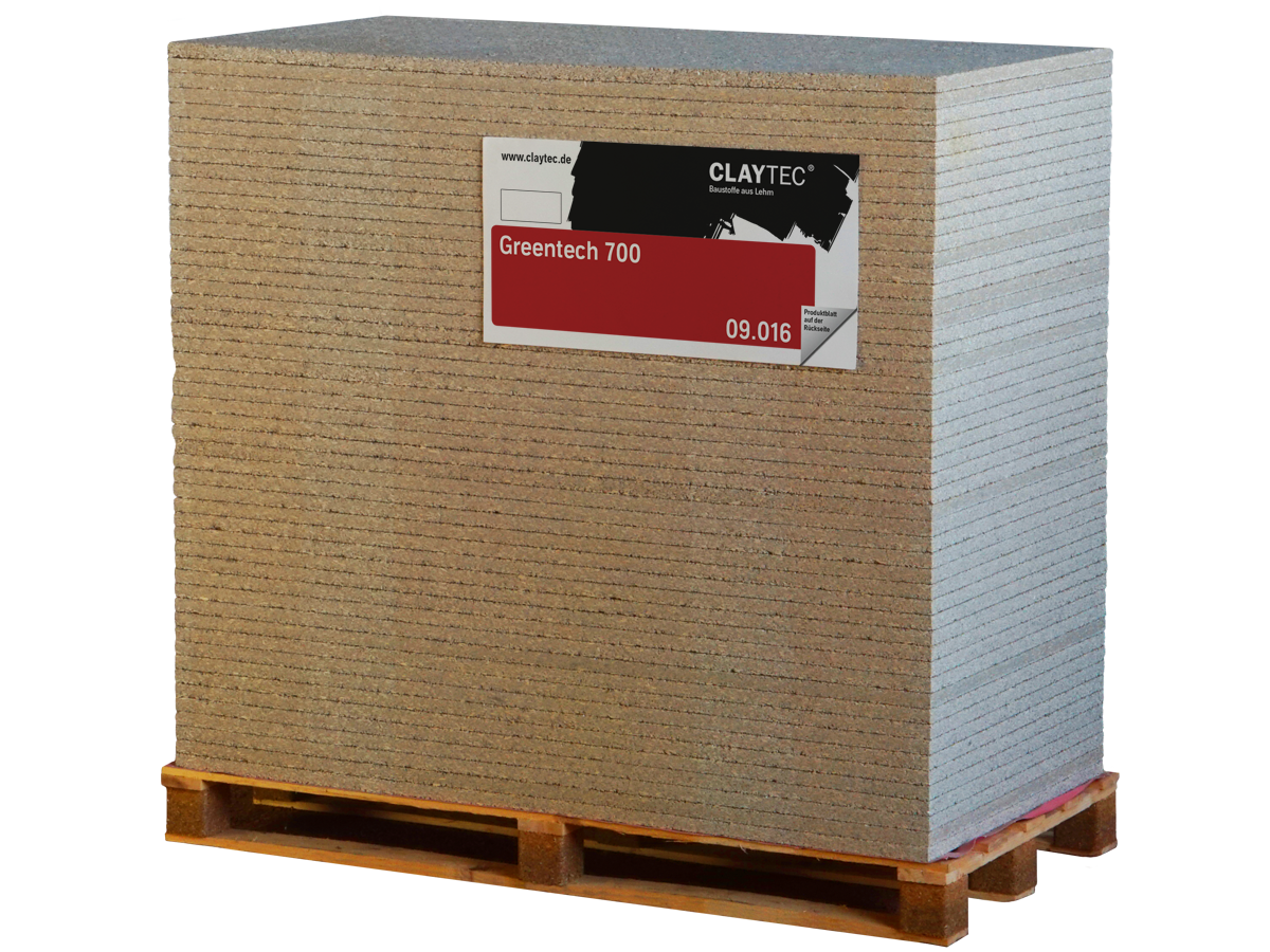 Trockenbauplatte aus Lehm und Hanf zum Beplanken von Holz- und Metallständerkonstruktionen von Innenwänden, Vorsatzschalen, Decken- und Dachflächen. Die Claytec Greentech 700 ist fest und stabil, scharfkantig und maßgenau. Sie hat beste baubiologische Eigenschaften. Das Trockenbau-Unterkonstruktionsraster ist 62,5 cm. Ihre Wasserbeständigkeit erlaubt auch dicke Lehmputzaufträge. Für die Armierungslage sind Lehmklebe- und Armierungsmörtel geeignet.