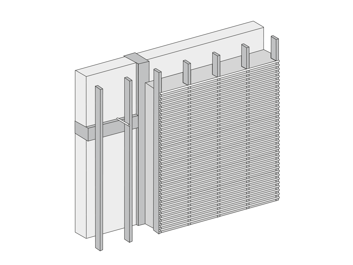 Holzleichtlehm wird bei Innenschalen in Schütttechnik nass eingebaut, beispielsweise wenn die Außenwände innen große Vor und Rücksprünge haben oder wenn Installationen eingebaut werden sollen. Holzleichtlehm ist ökologisch und bildet stabile Gefüge.