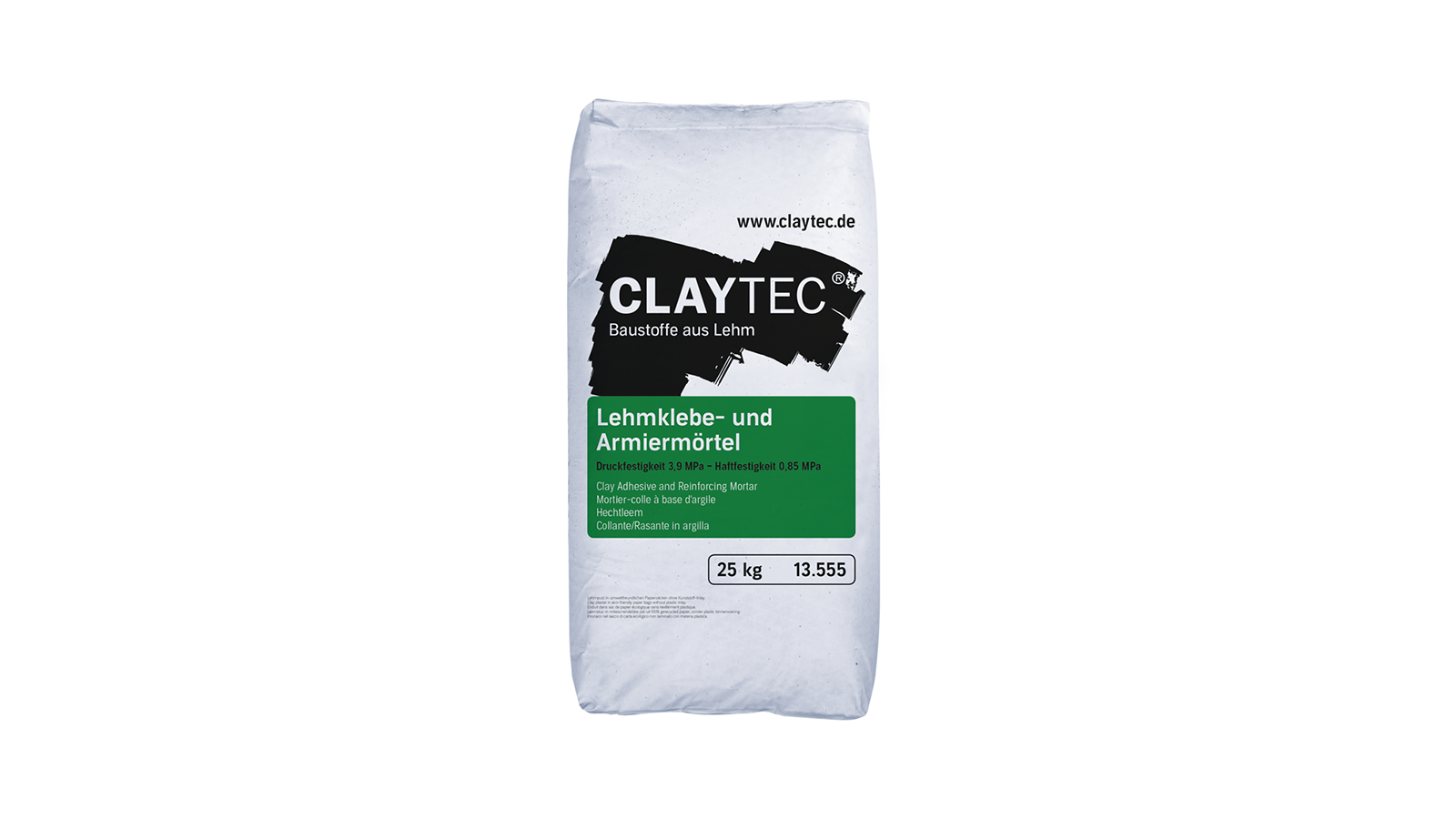 Lehmklebe- und Armierungsmörtel für die Befestigung von Innendämmplatten und die nachfolgende Armierungslage. Die Lehm- und Zelluloseanteile sorgen für beste Verarbeitbarkeit und sicheren Verbund: Mit einer für Lehmmörtel neuartig hohen Druckfestigkeit von 3,9 MPa und einer Haftfestigkeit von 0,85 MPa ist Festigkeit gewährleistet. Die Armierungslage wird mit feinen Claytec-Lehmdeckputzen oder YOSIMA weiterbehandelt. Bei guter Vorarbeit kann auch einfach mit dem Clayfix-Lehmanstrichstoffsystem gestrichen werden.