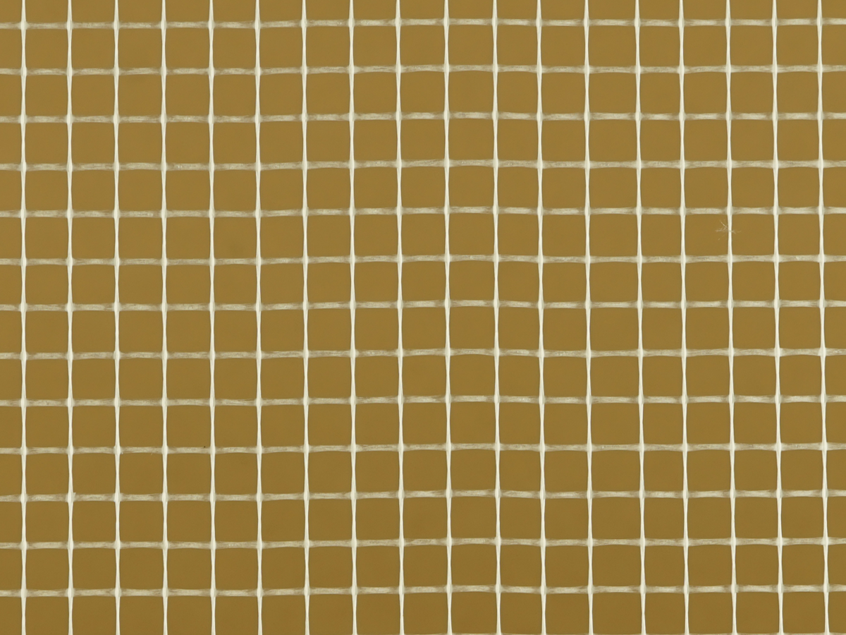 Üvegselyemszövet /Roving, polimerrel kikészítve. Súly: kb. 65g/m2, Szemcseméret kb. 5,5 x 5,5 mm.
